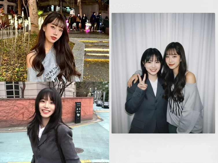 「美图秀秀【AI合照】功能,利用AI智能技术,把两个不在同一时空的人,自然、真实地“合”在一起。无论相隔千里,还是错过同框,只需上传两张单人照,AI便能智能匹配姿态与光影,将其无缝融入精心设计的潮流场景,生成宛如现场拍摄的专业级合照。写真、旅行、闺蜜打卡、情侣纪念……从此,距离不再是遗憾,回忆可以随时“补全”。」