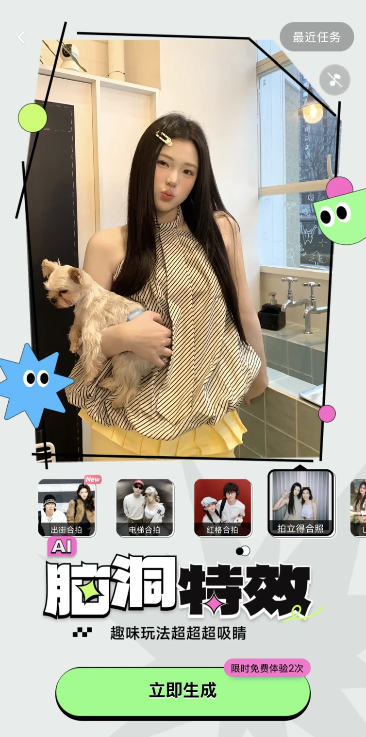 「你们的故事,值得被完整记录~异地恋情侣?来张“假装一起旅行”的合照吧! 闺蜜各在天涯?用【拍立得合拍】重温青春感!亲子无法团聚?生成一张温暖合照,延续温情时刻! 」