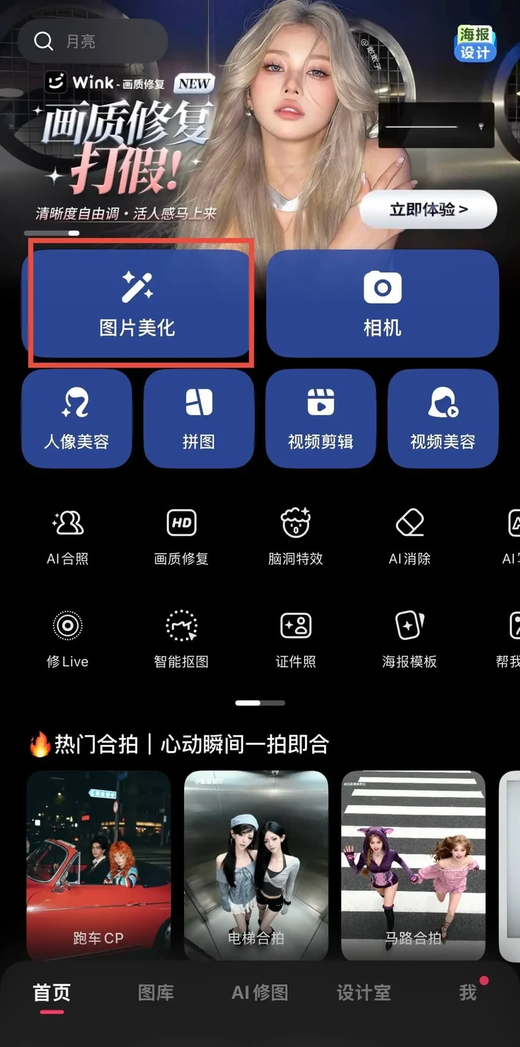2. 打开应用后,点击首页【图片美化】模块,在系统相册中选择要编辑的照片。